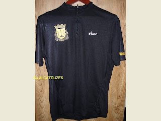 Ora meus caros leitores como a BTT é um desporto que se aconselha a praticar minimamente vestido. E se possível quanto mais cómodo melhor. Então nós, os alcatruzes, como também temos a nossa vanglória, metemos mão à algibeira e sacamos de lá a notinha para mandáramos fazer os nossos próprios JERSEYS personalizados, e juntamente com o apoio da JUNTA DE FREGUESIA DE ZEBREIRA que em nome do grupo “Os Alcatruzes” desde já agradeço; o nosso muito bem-haja. Lá conseguimos finalmente a nossa bela obra de arte